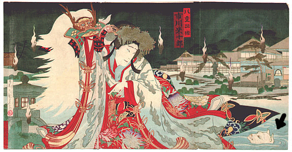 Later on the drama rapidly became the source of numerous Kabuki (歌舞伎) versions. Yaegaki-hime is a very famous Kabuki character and one of the 3 important princesses in Japanese folklore – Sanhime – and onnagata (女形) woman’s role.